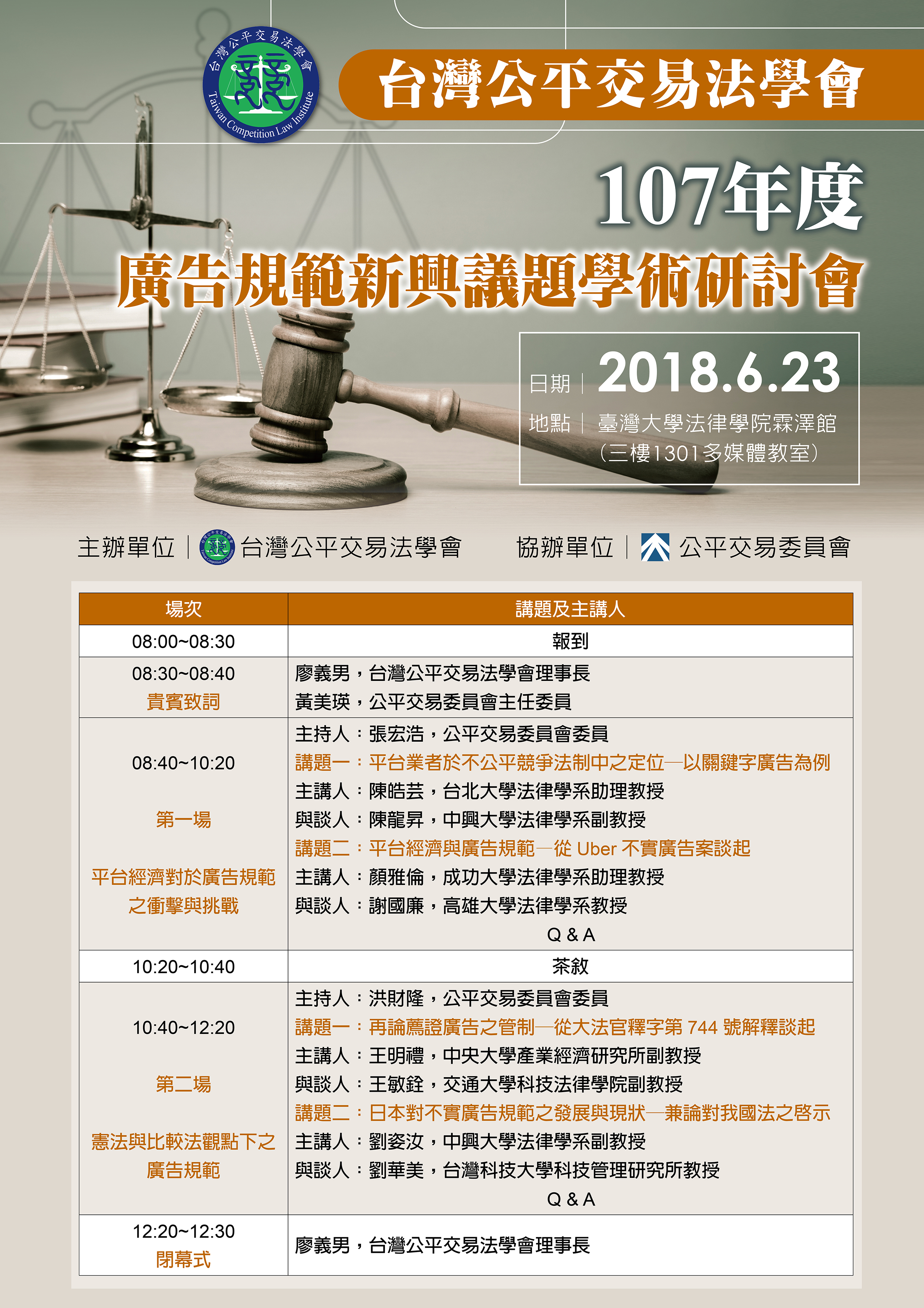 - (2018年06月23日)台灣公平交易法學會107年度第二次學術研討會