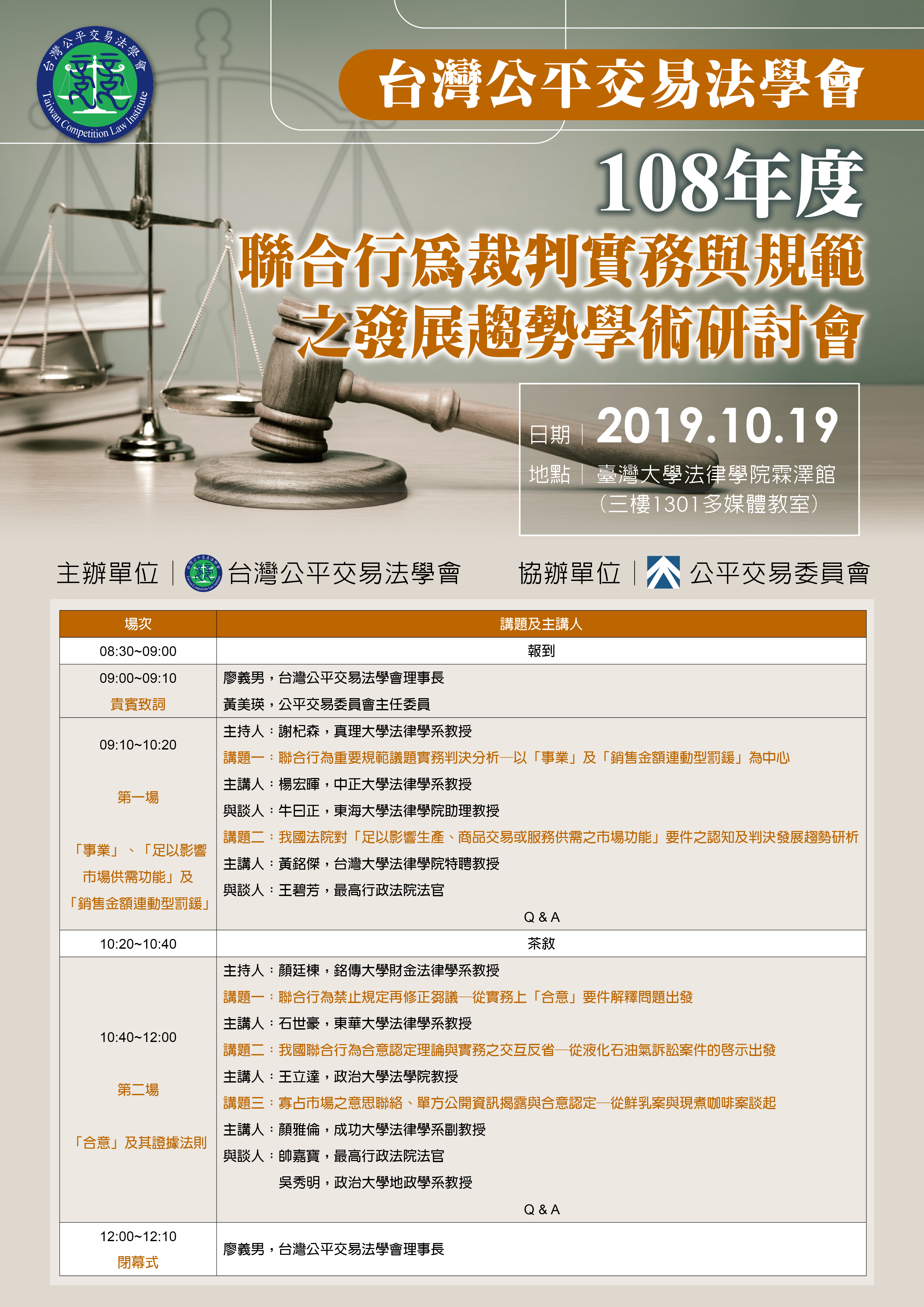 - (2019年10月19日)台灣公平交易法學會108年度第二次學術研討會