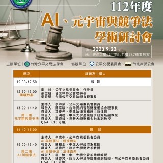- (2023年9月23日)台灣公平交易法學會112年度第2次學術研討會「AI、元宇宙與競爭法研討會」